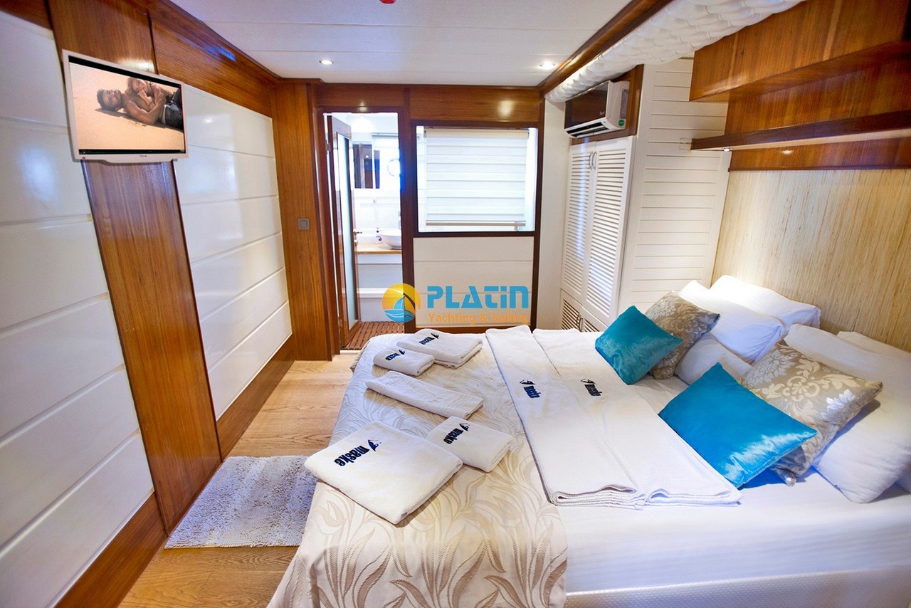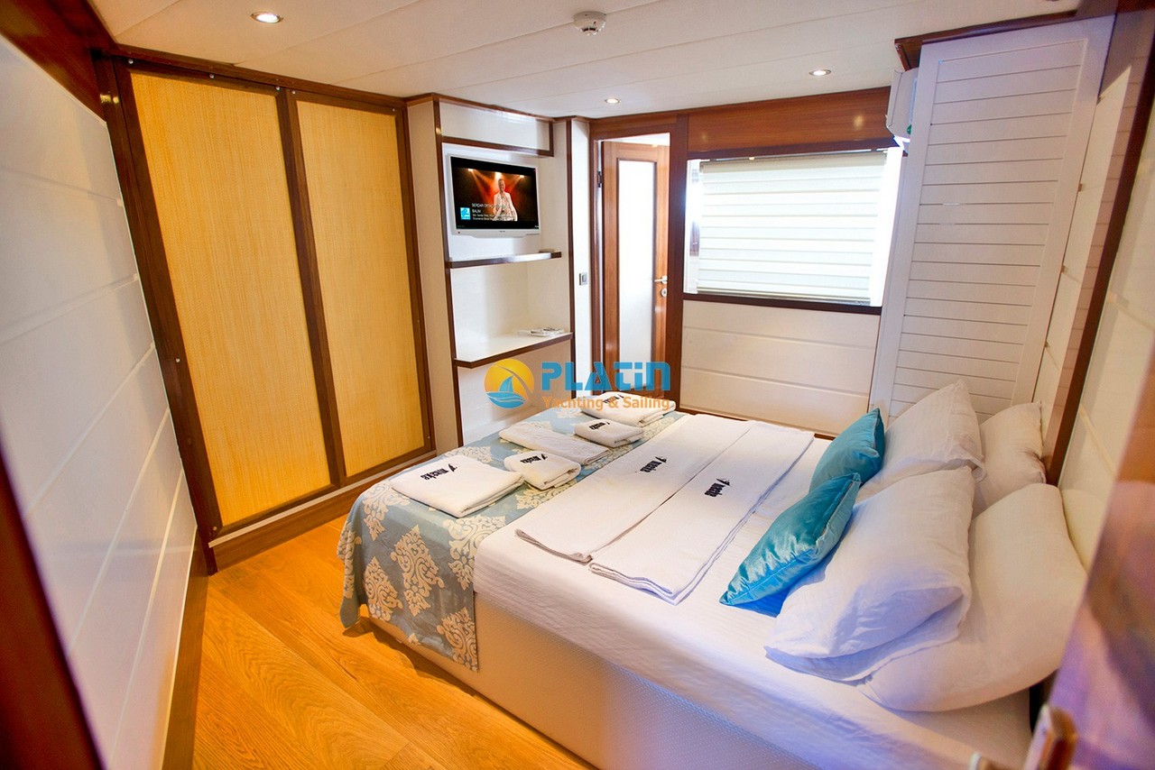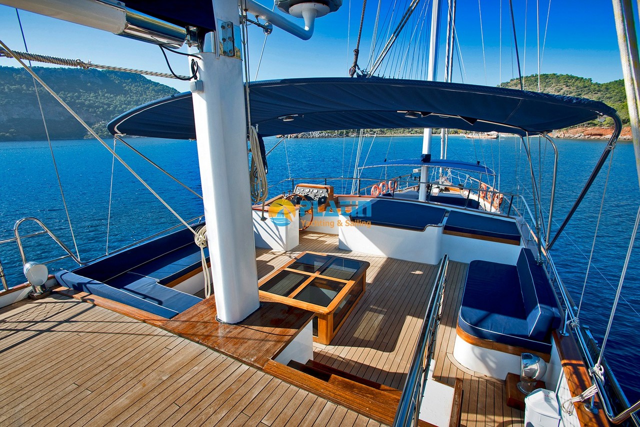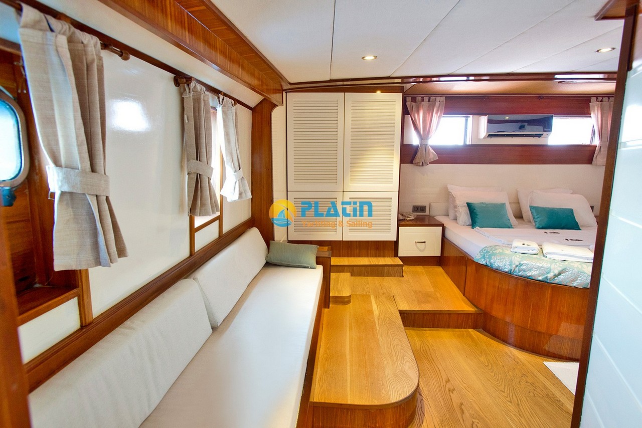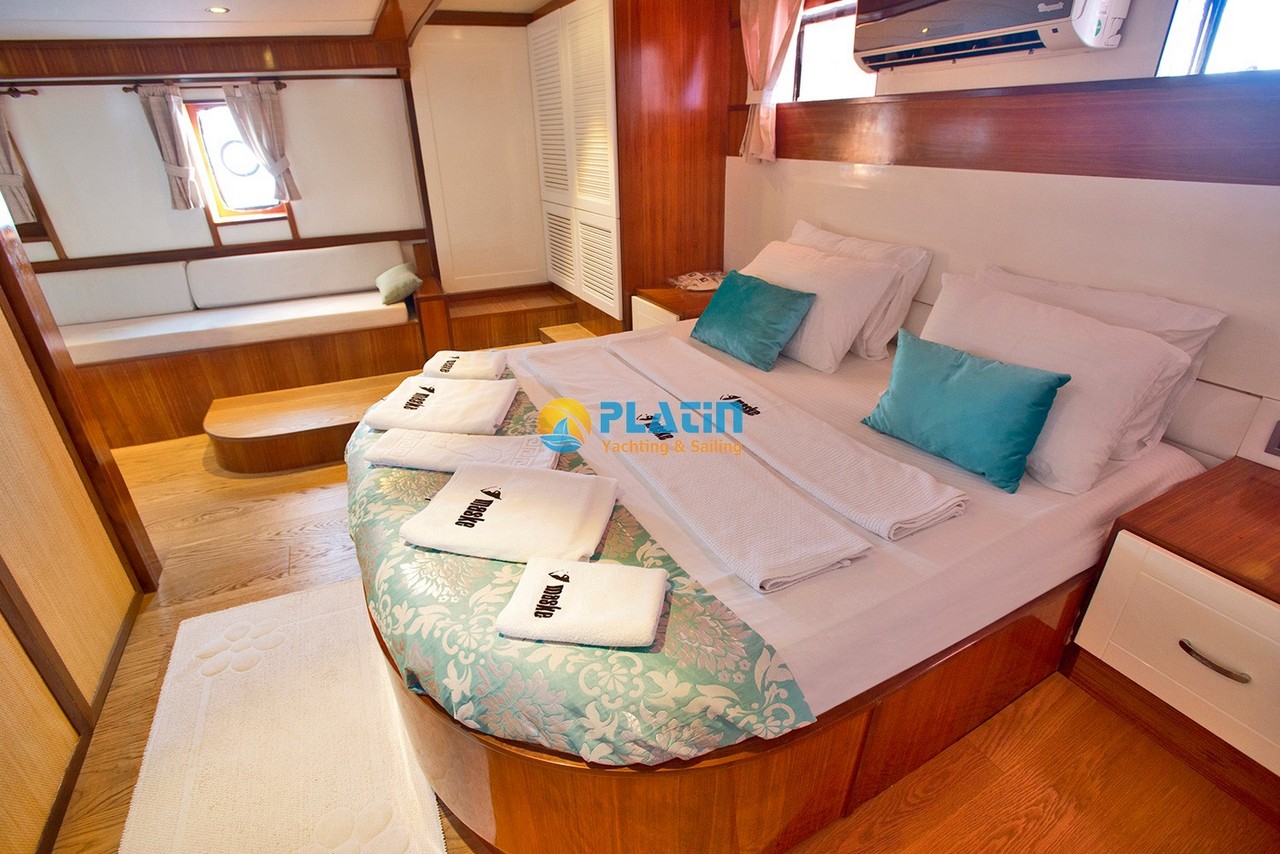12 kişilik aileler yada arkadaş grupları için uygun bir mavi yolculuk teknesidir. Fethiye, Göcek koyları, Marmaris, Yunan Adalarında hizmet veren bu teknemizde rahat ve keyifli tatil geçirmeniz mümkündür. Teknenin üst tarafında bulunan flybridge rahatça güneşlenip dinlenmek için olanak sağlar.